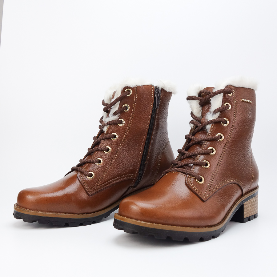 BOTIM PEGADA DE PELE COM ATACADORES E PELO NO INTERIOR