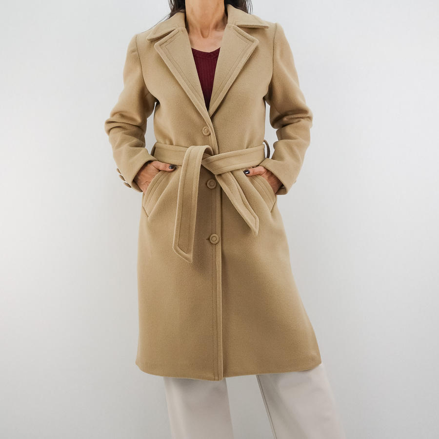 CASACO KENSY DE FAZENDA 7/8 COM CINTO E BOLSOS