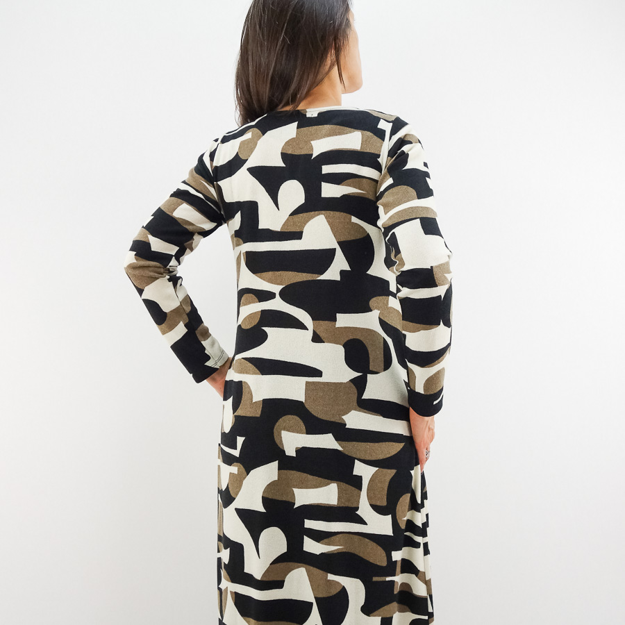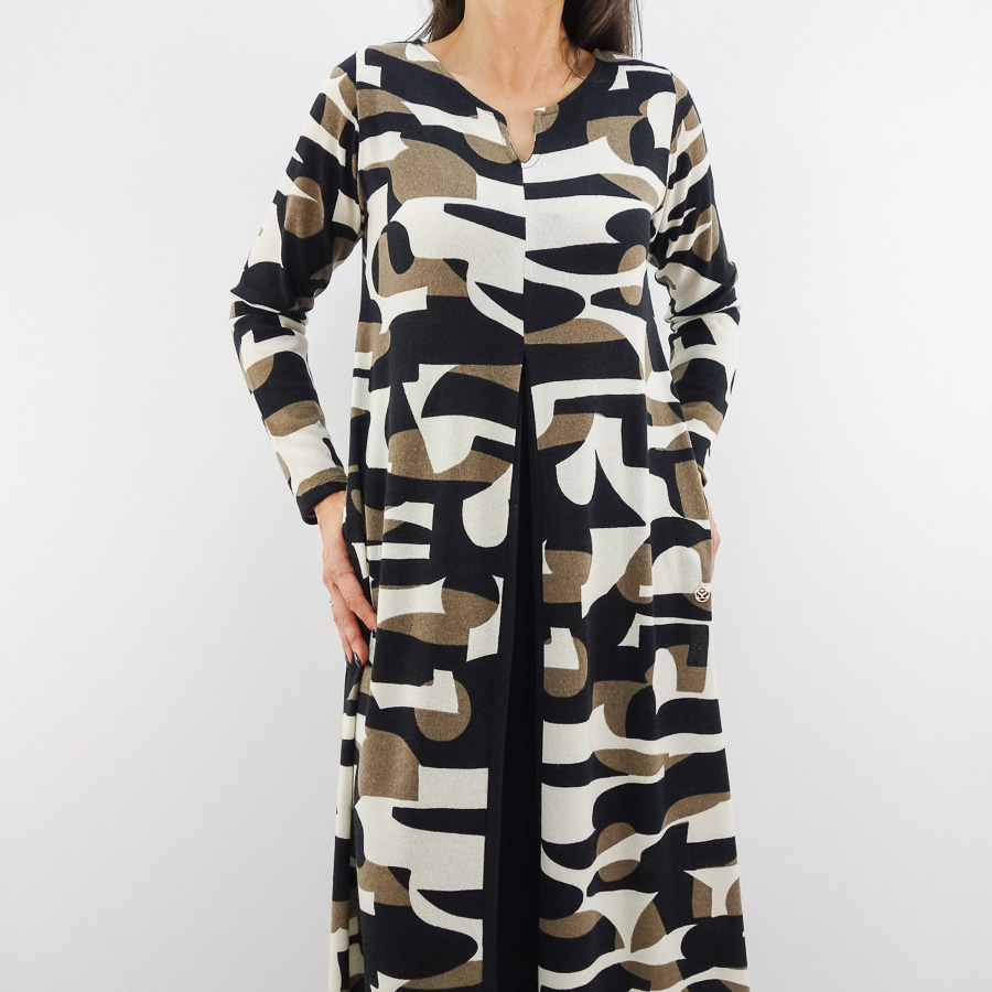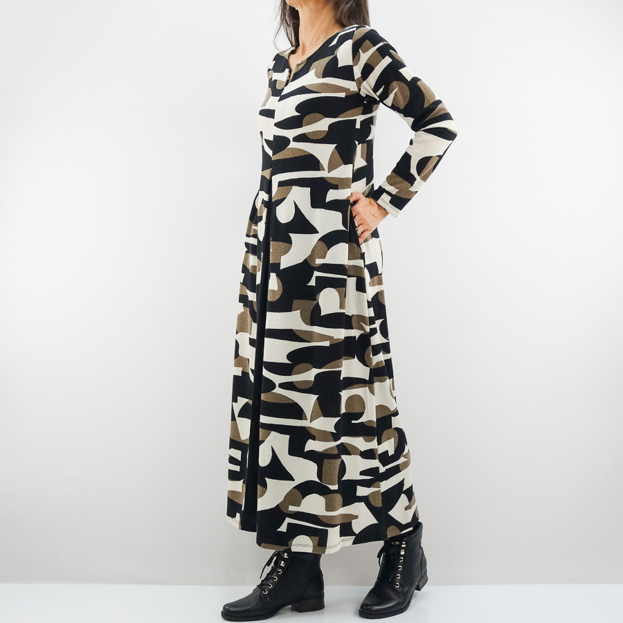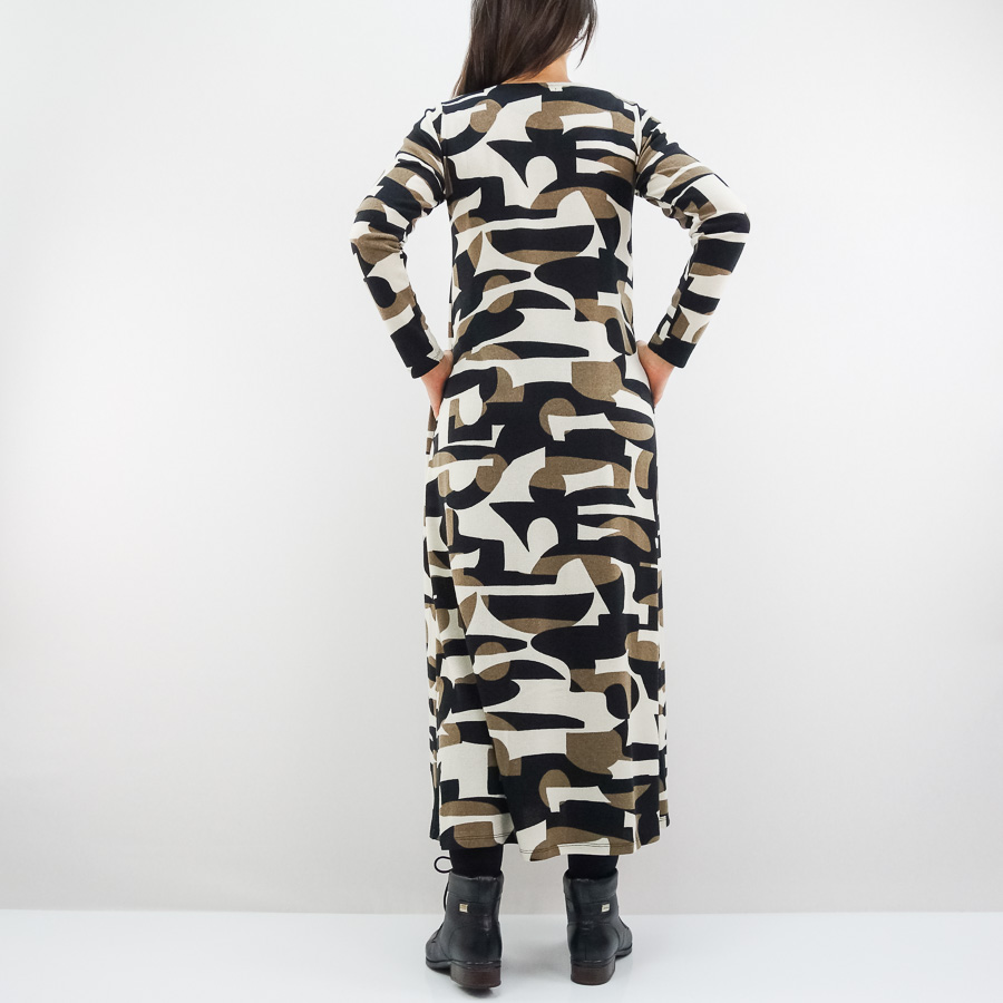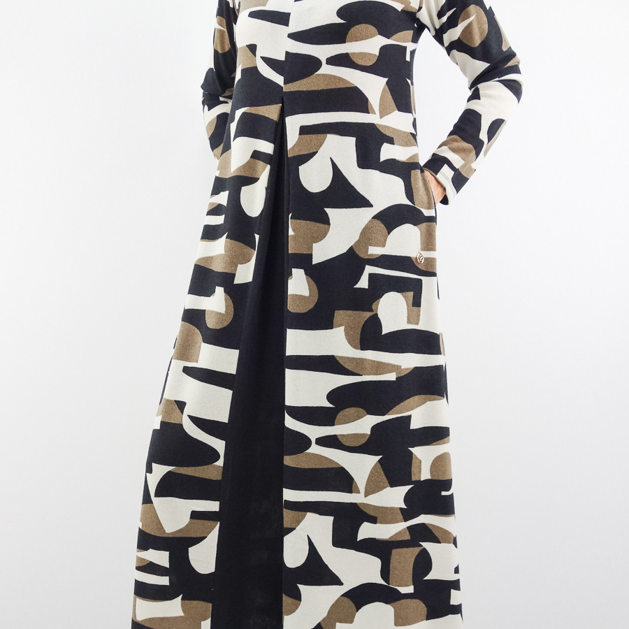 VESTIDO SCUSI COMPRIDO ESTAMPADO COM MACHO NA FRENTE