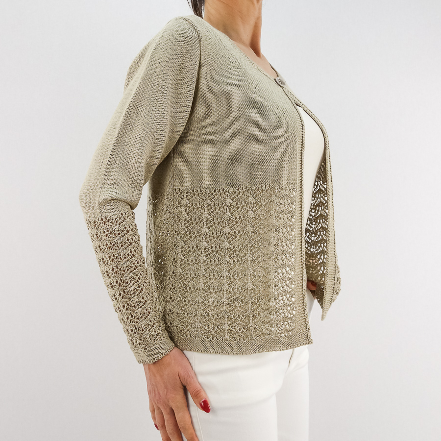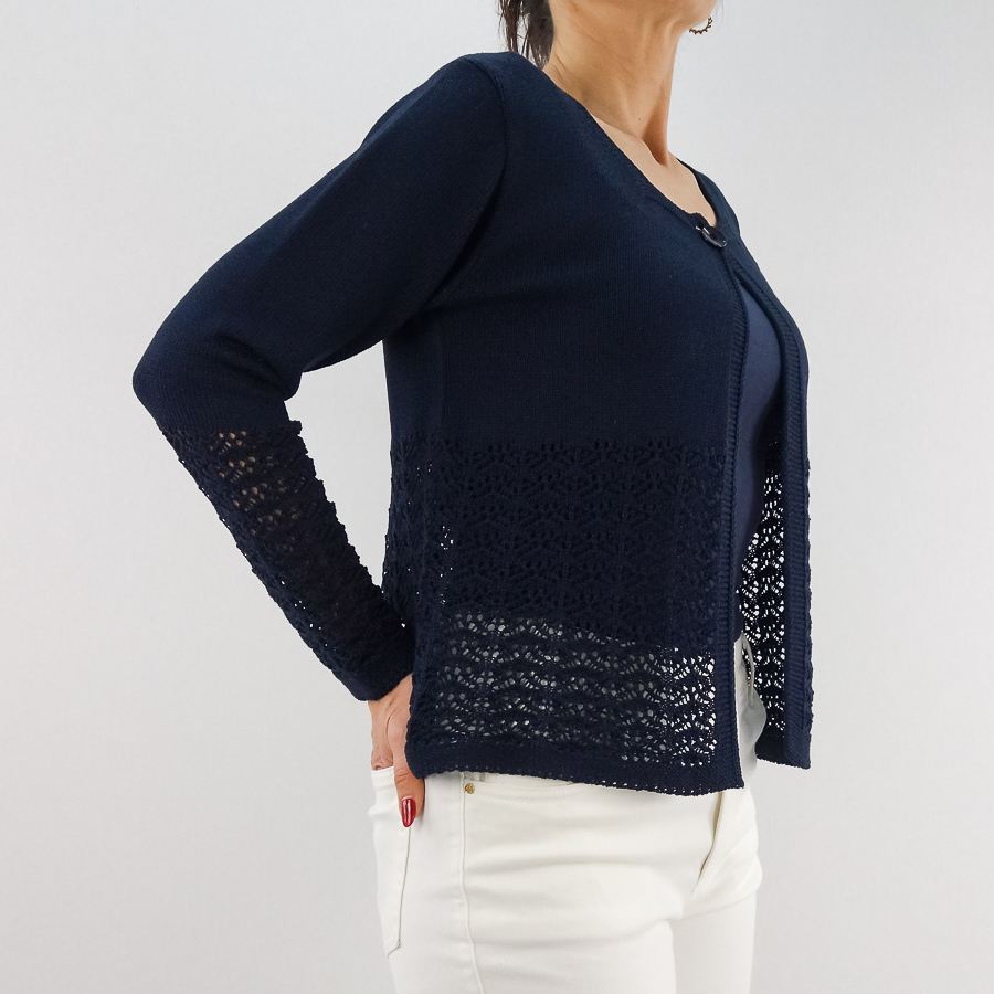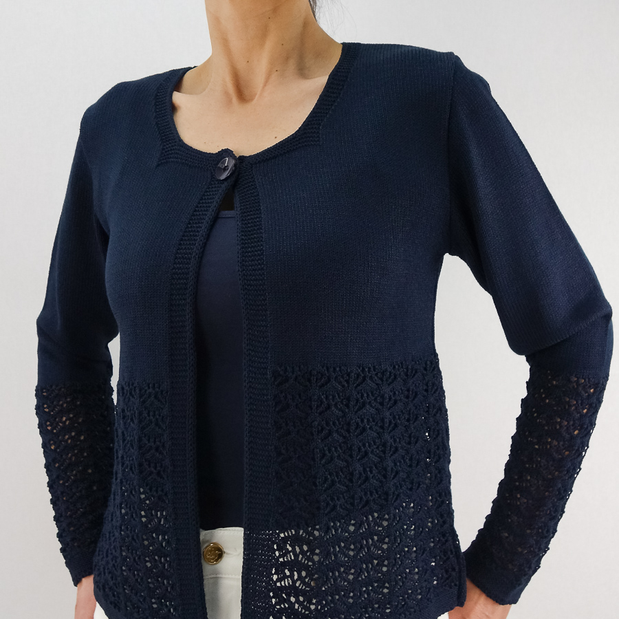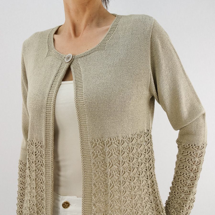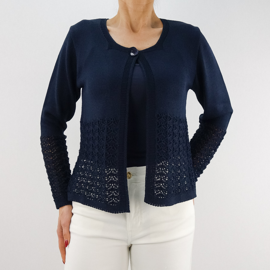 CASACO TS DE LINHA COM CROCHET APERTA COM UM BOTÃO