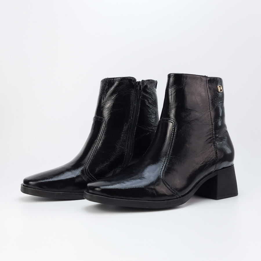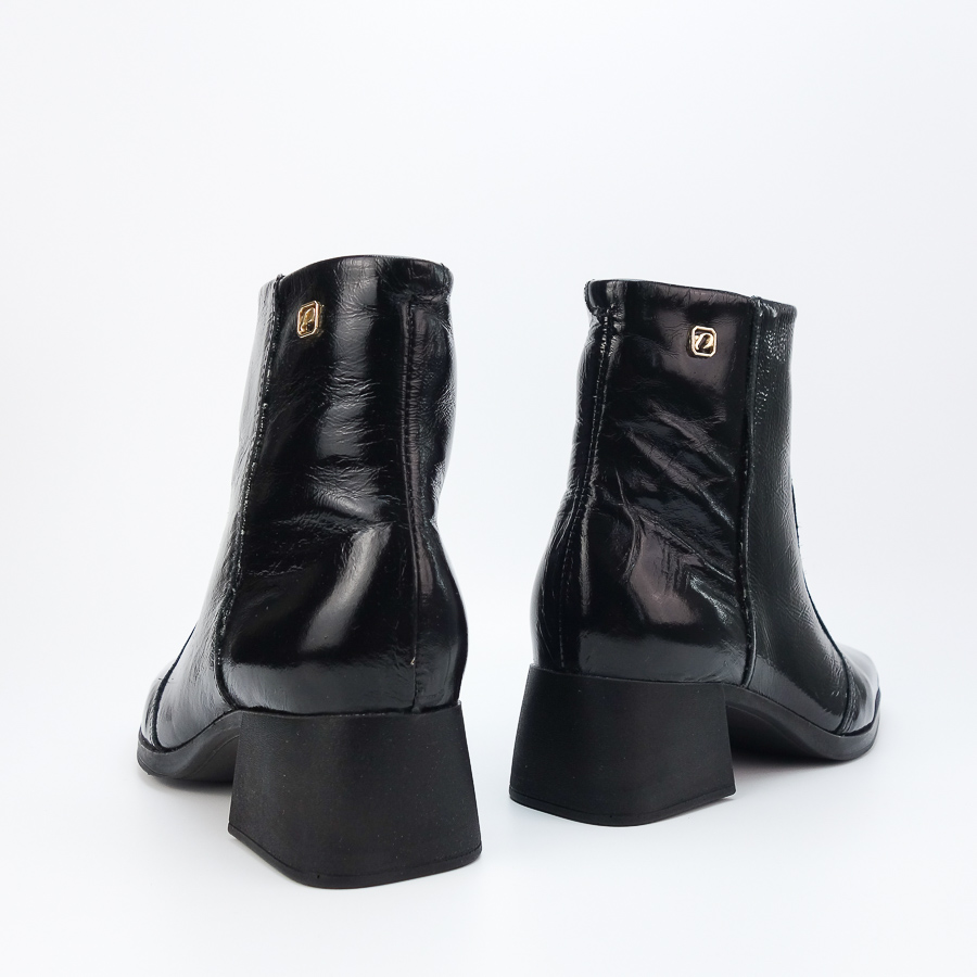 BOTIM PEGADA ENVERNIZADO COM SALTO BAIXO E FECHO INTERIOR