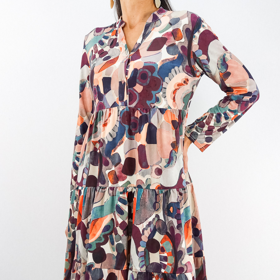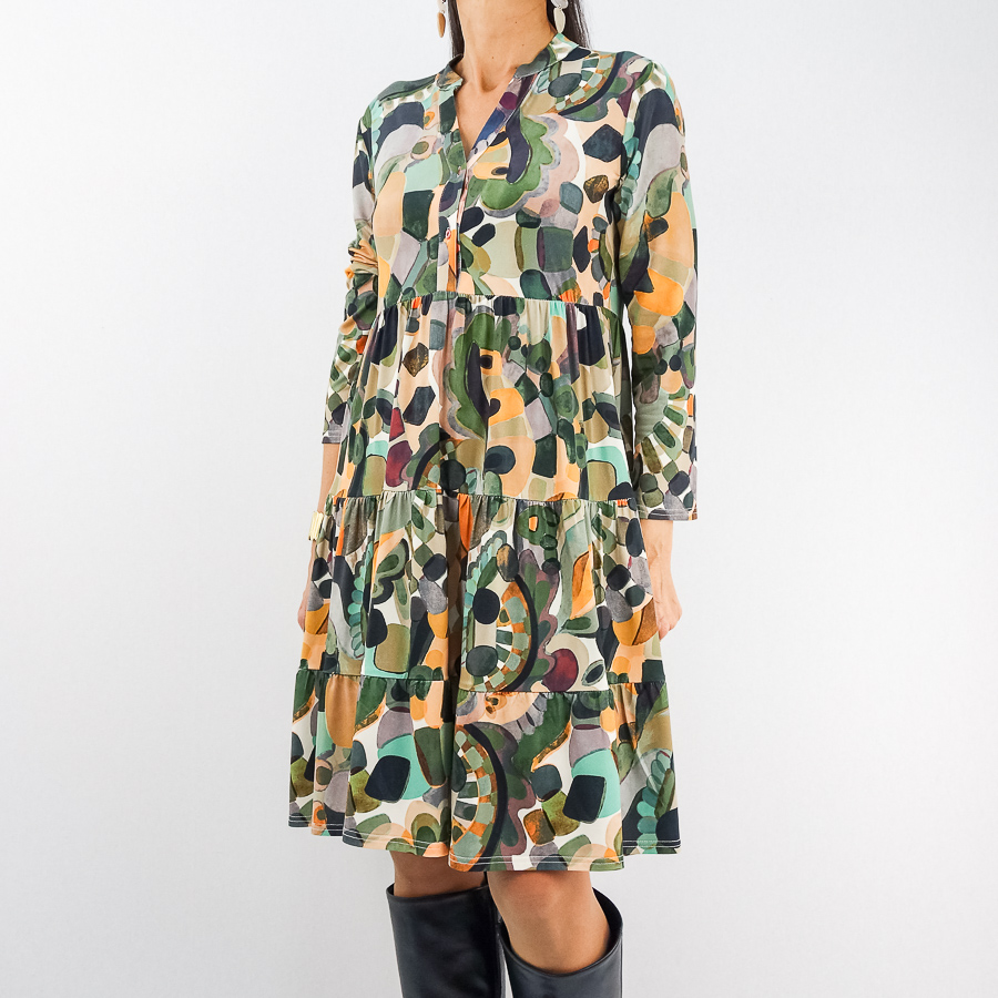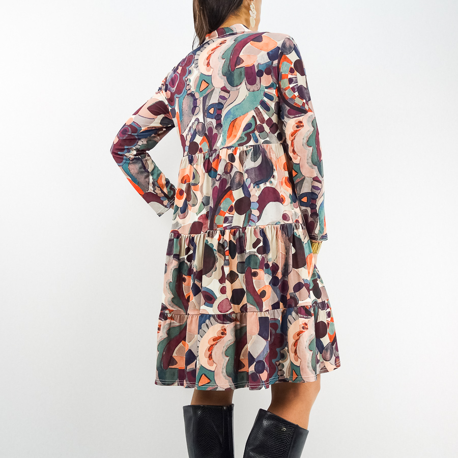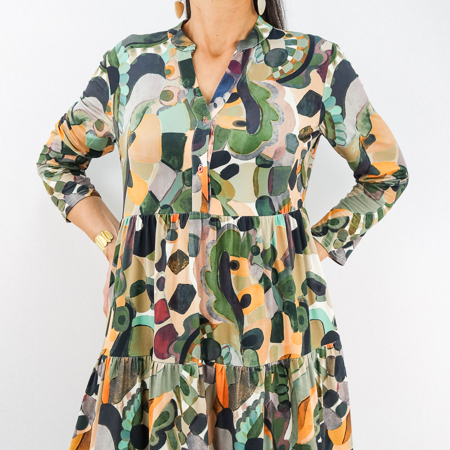 VESTIDO SILENNE ESTAMPADO GOLA MAO COM DECOTE EM V