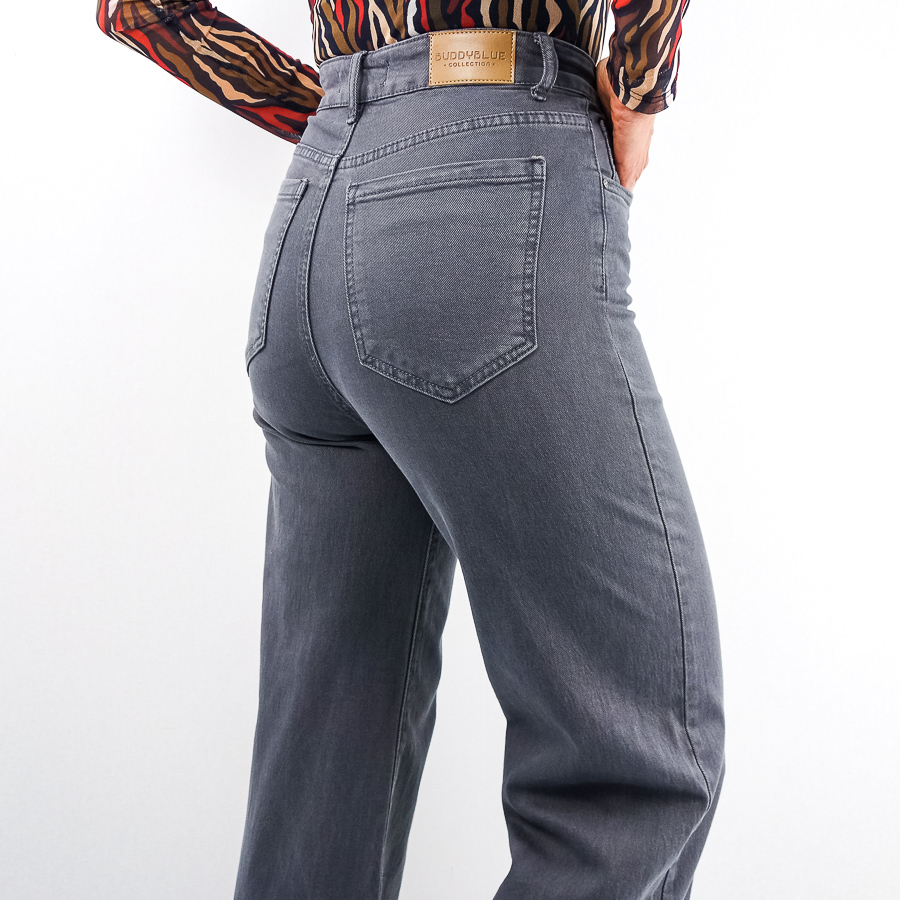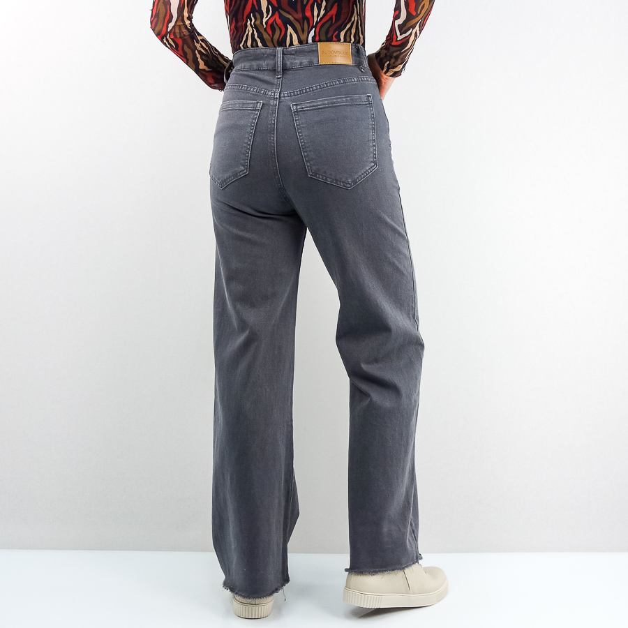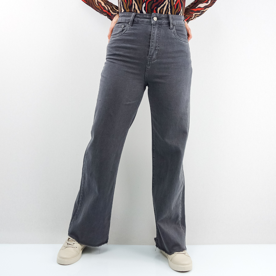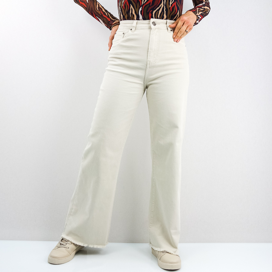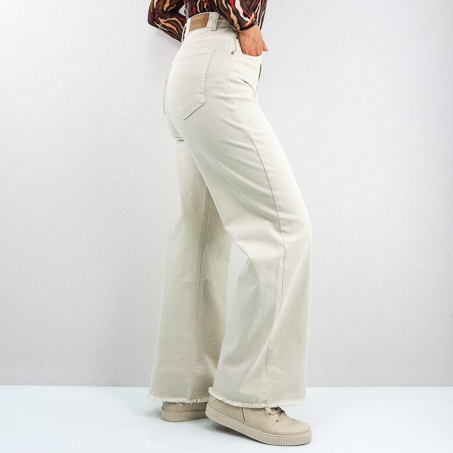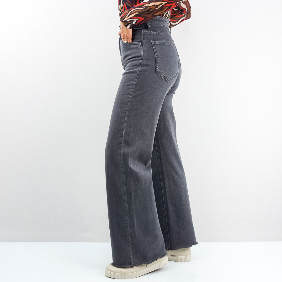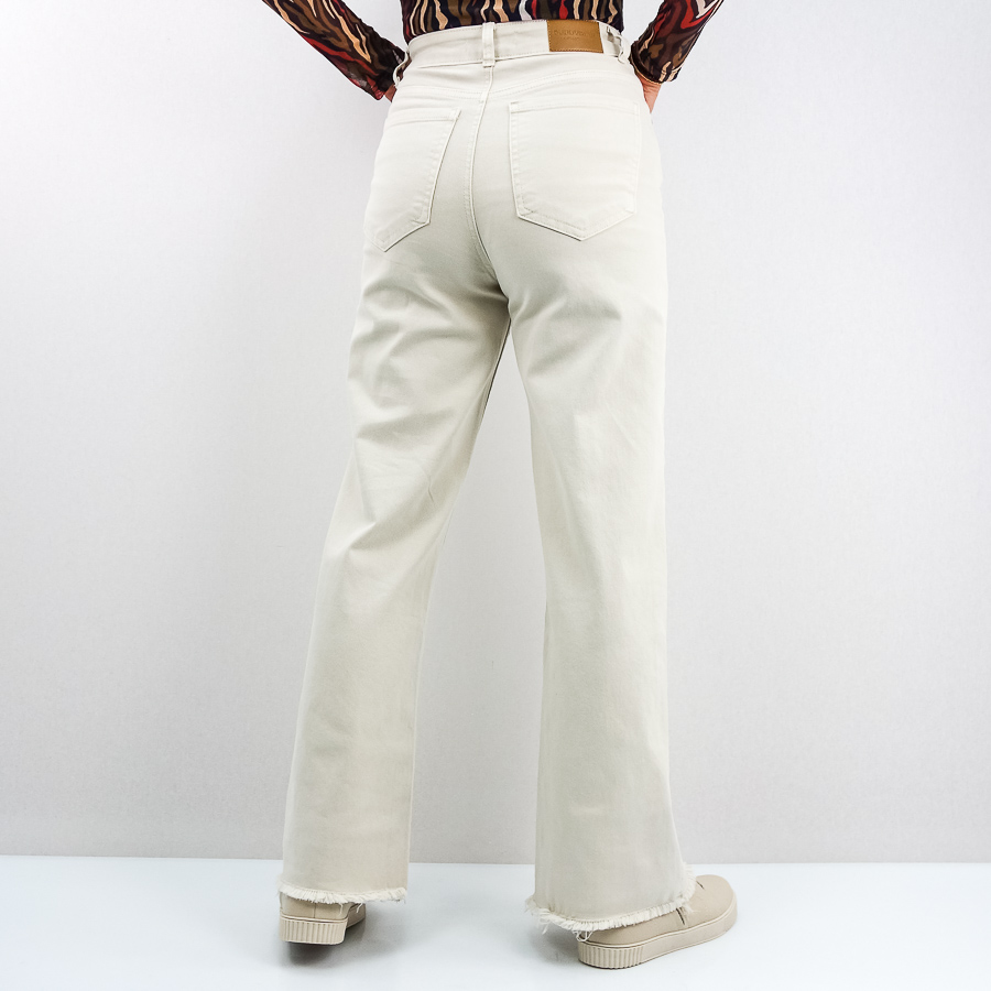 CALÇA BB SARJA WIDE FLARE COM FRANJA NA BAINHA