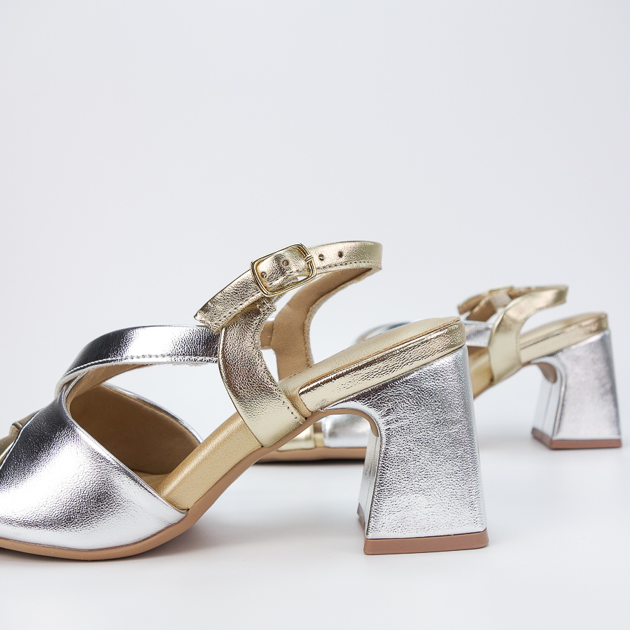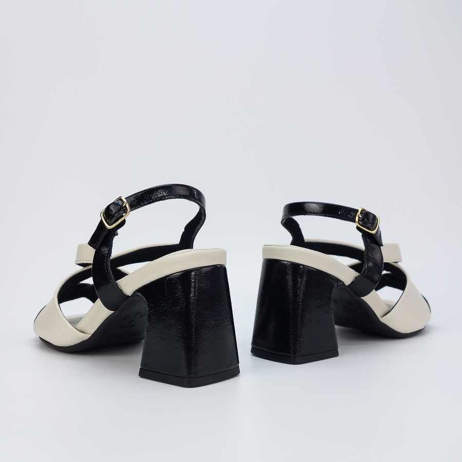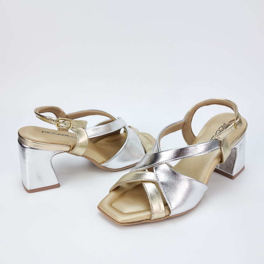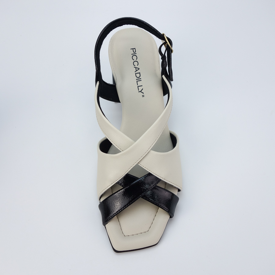SANDÁLIA PICCADILLY BICOLOR COM TIRAS CRUZADAS E SALTO MÉDIO