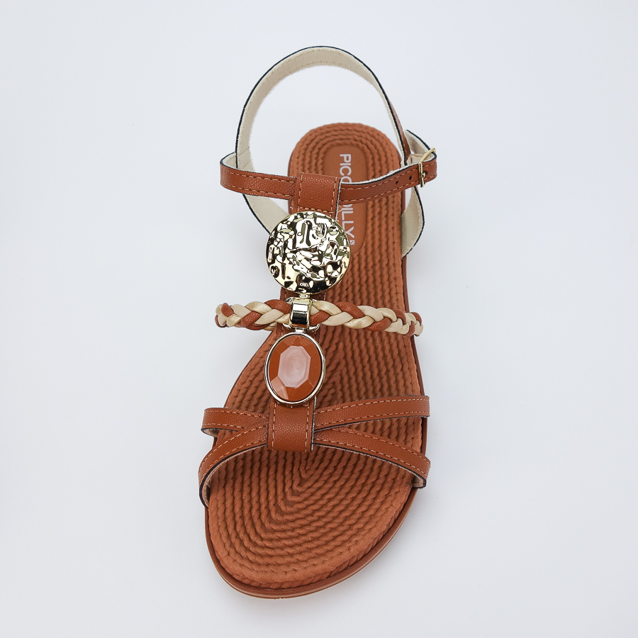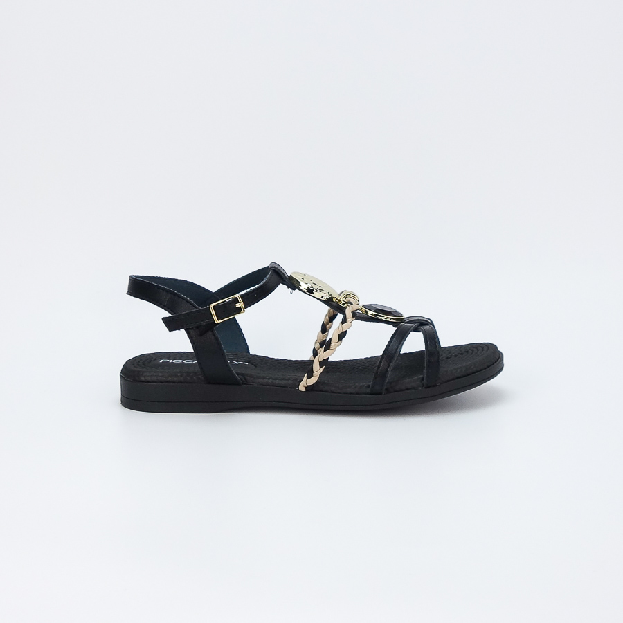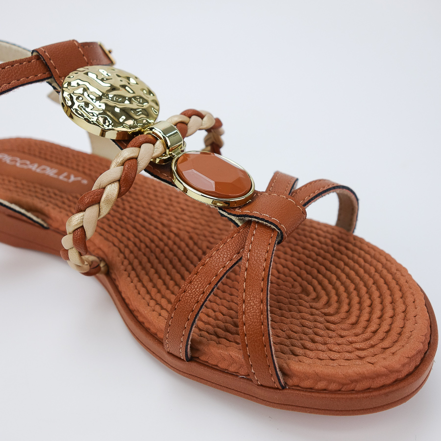SANDÁLIA PICCADILLY DE TIRAS COM TRANÇA E APLICAÇÃO DOURADA