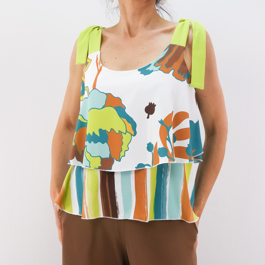 TOP SCUSI ESTAMPADO COM LAÇADA NAS ALÇAS