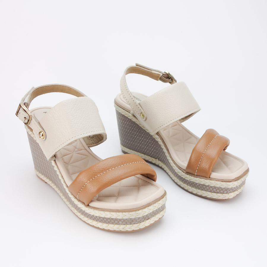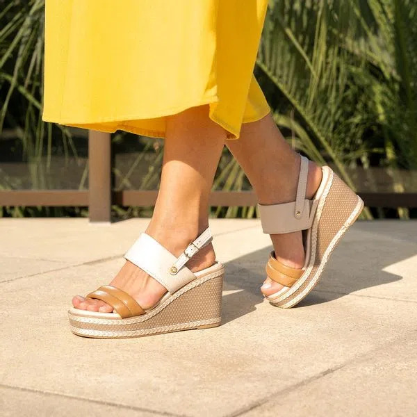 SANDÁLIA PEGADA EM PELE COM CUNHA
