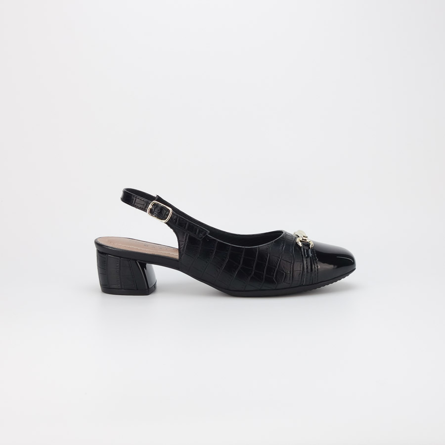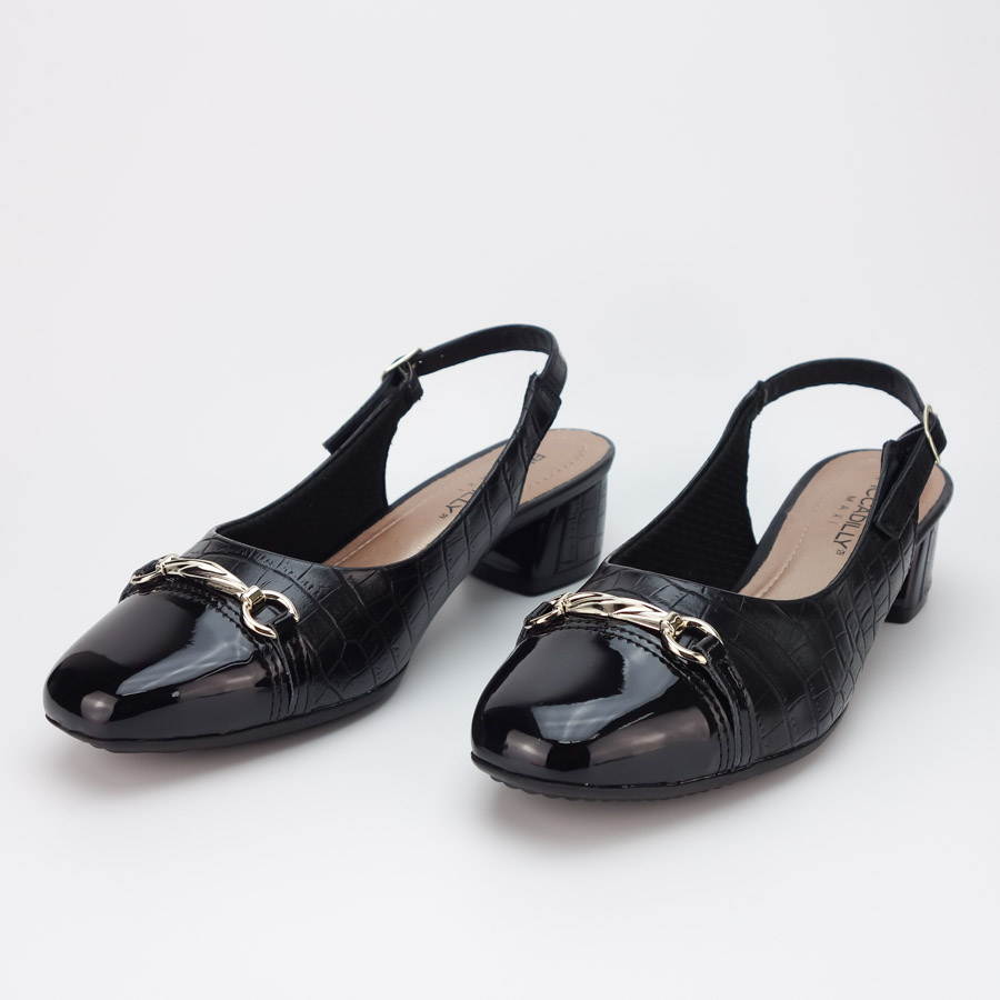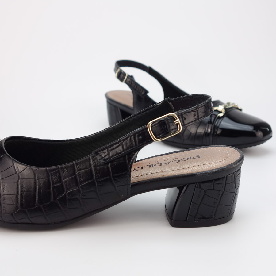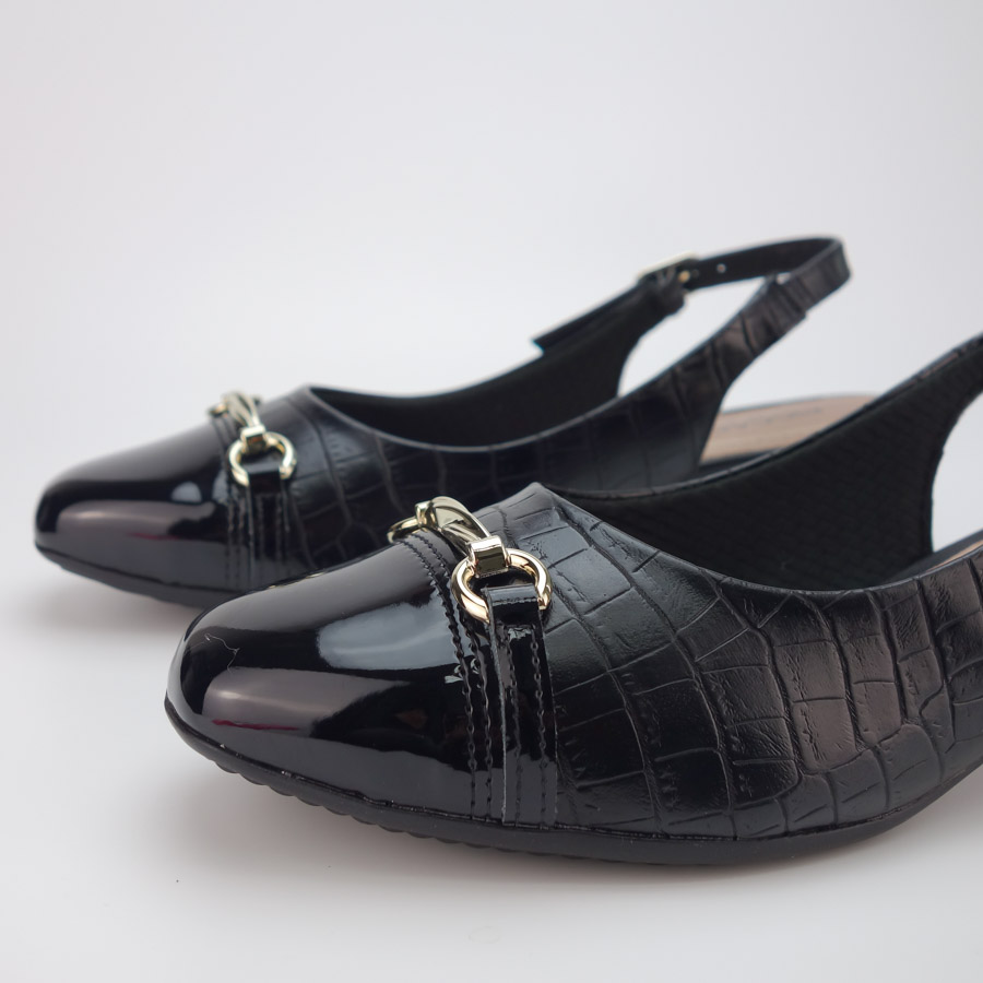 SAPATO PICCADILLY SLING BACK CROCO COM BIQUEIRA VERNIZ