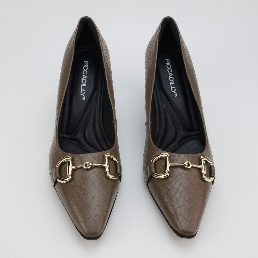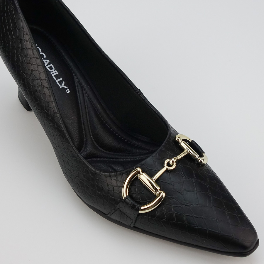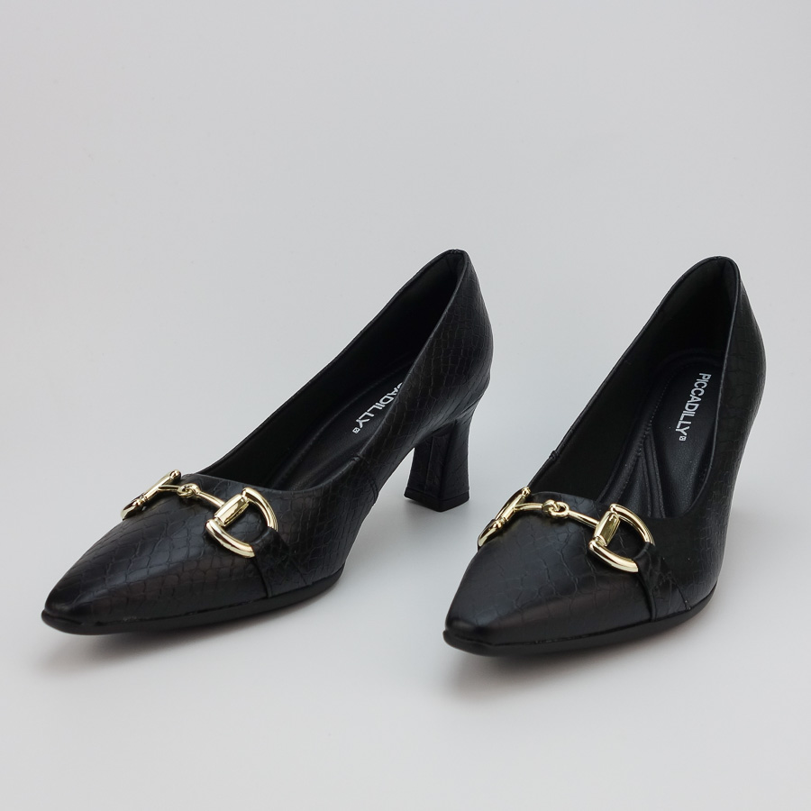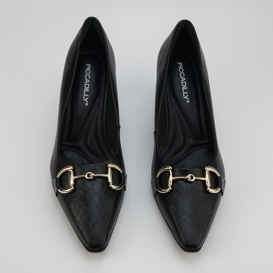 SCARPIN PICCADILLY BICUDO SALTO MÉDIO E APLICAÇÃO DOURADA