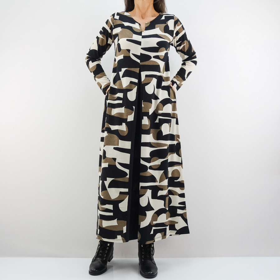 VESTIDO SCUSI COMPRIDO ESTAMPADO COM MACHO NA FRENTE