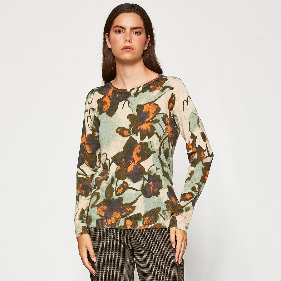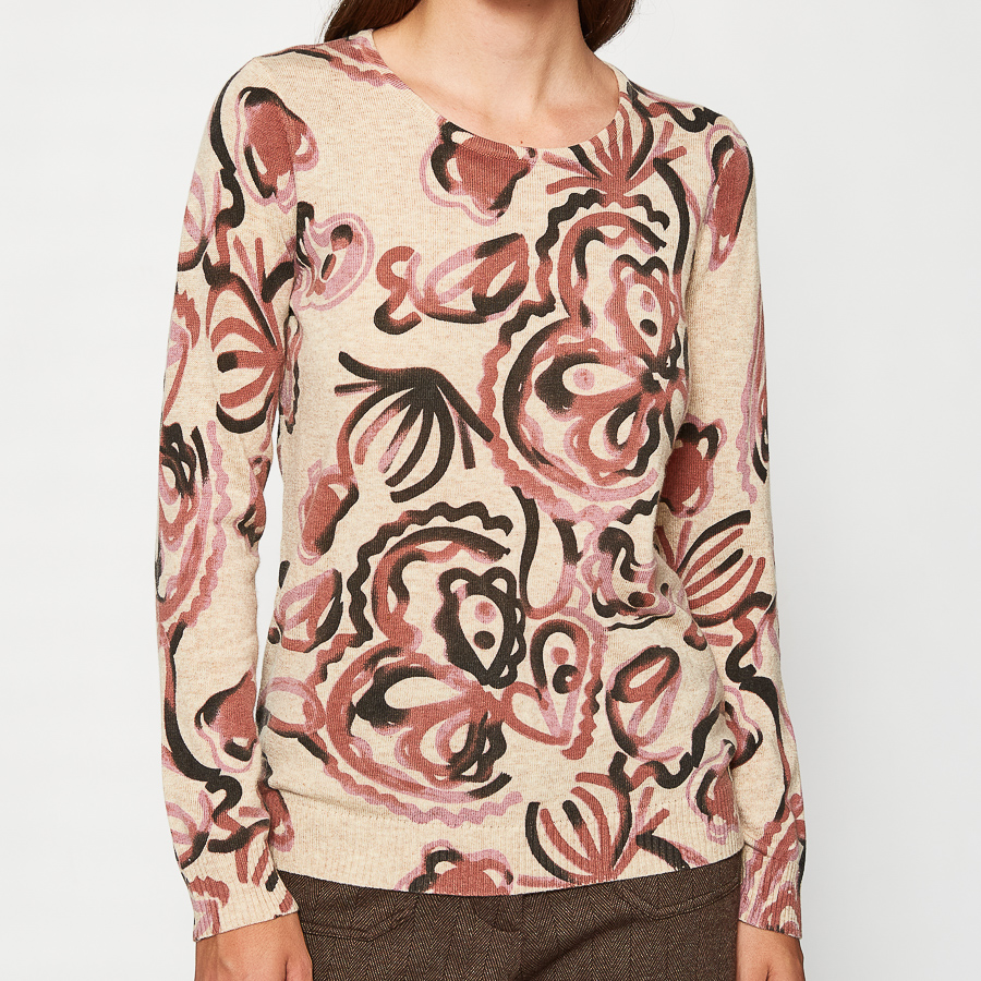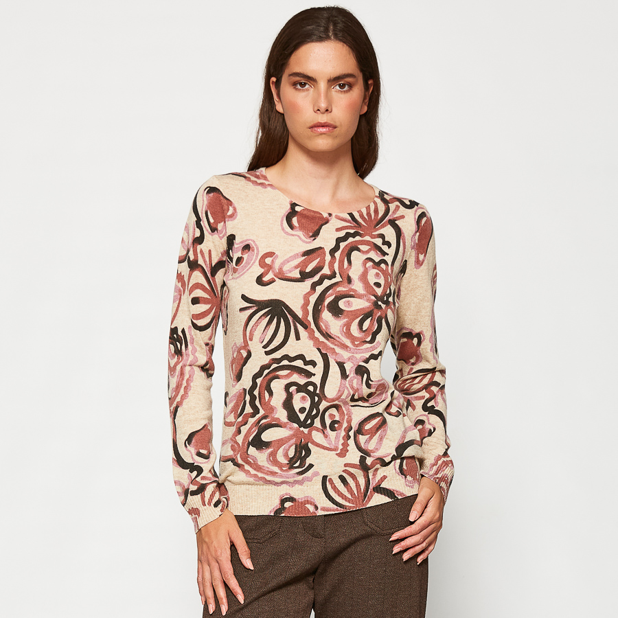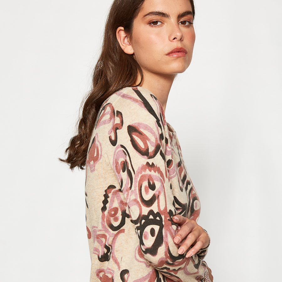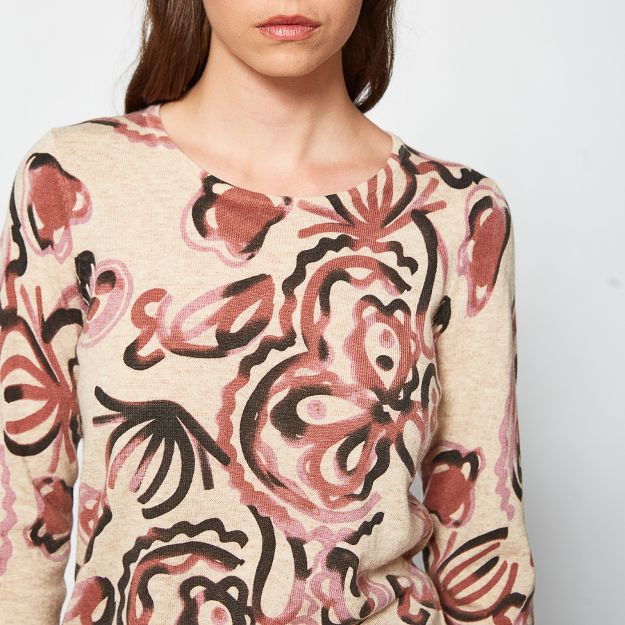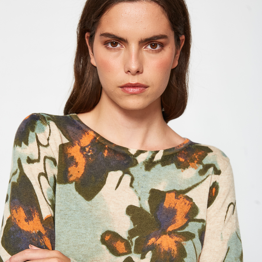 CAMISOLA MDM MALHA ESTAMPADA COM ACABAMENTOS CANELADOS