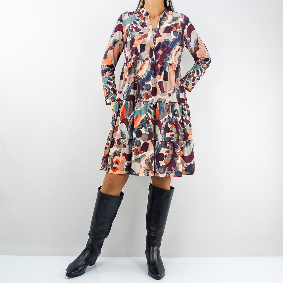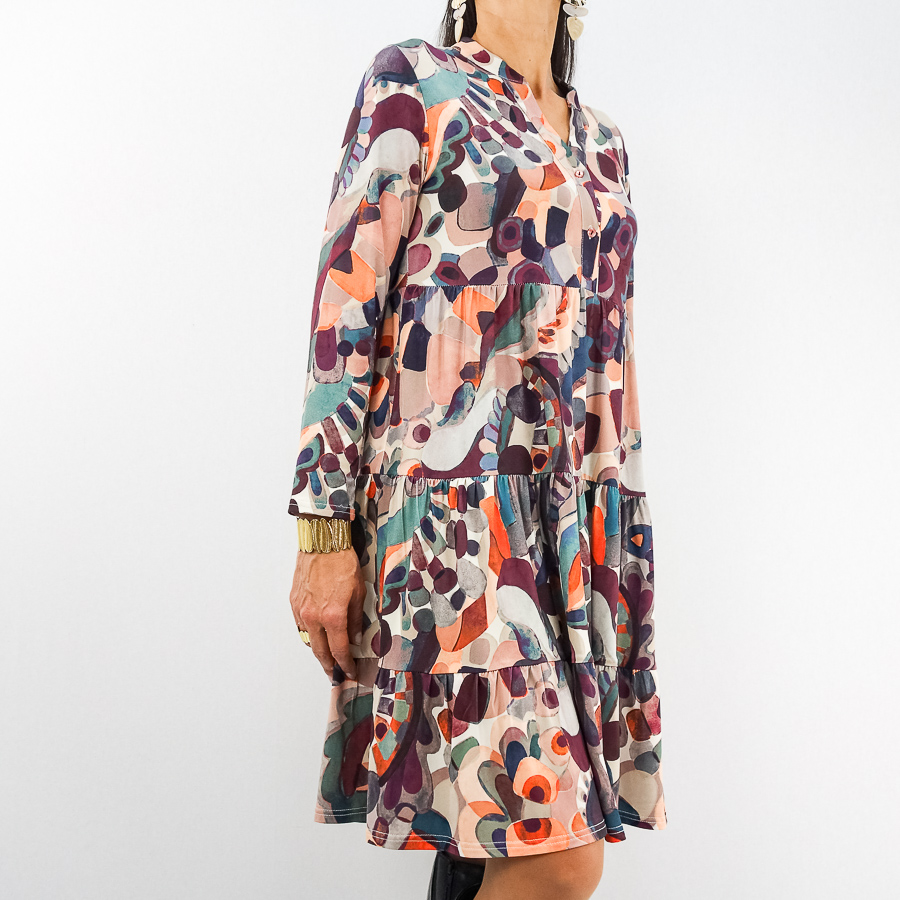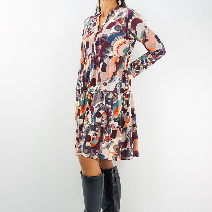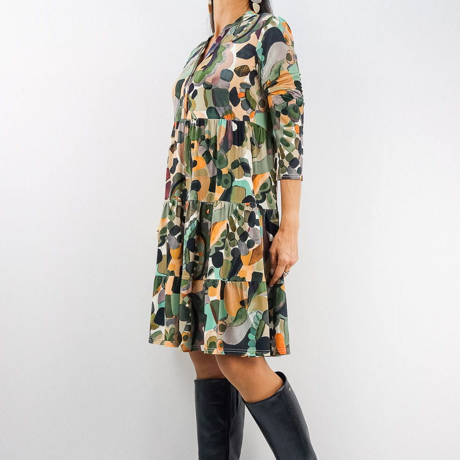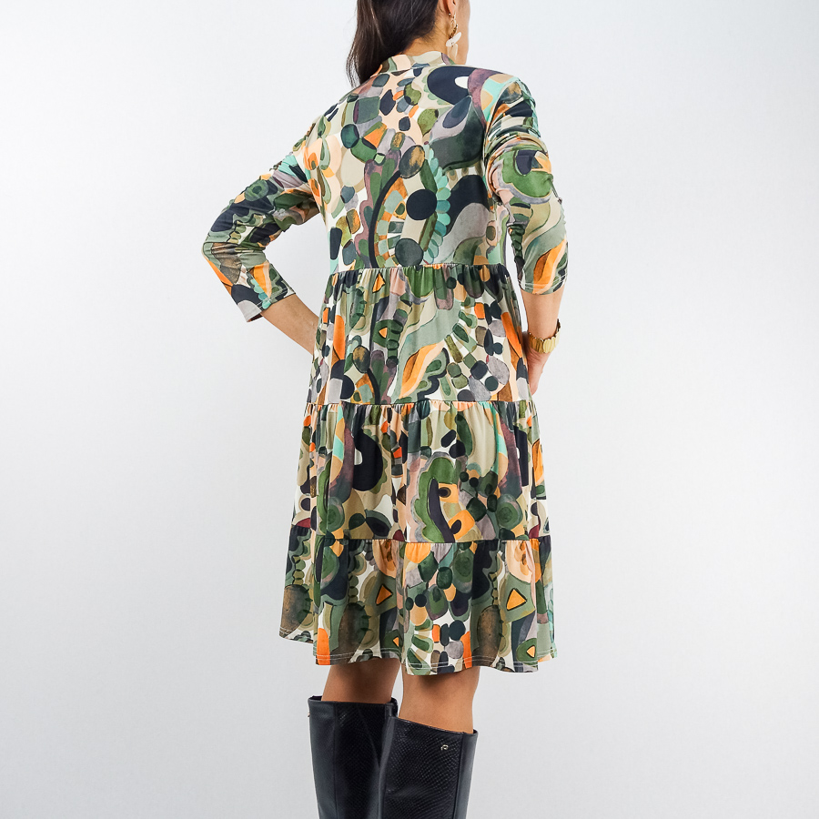 VESTIDO SILENNE ESTAMPADO GOLA MAO COM DECOTE EM V
