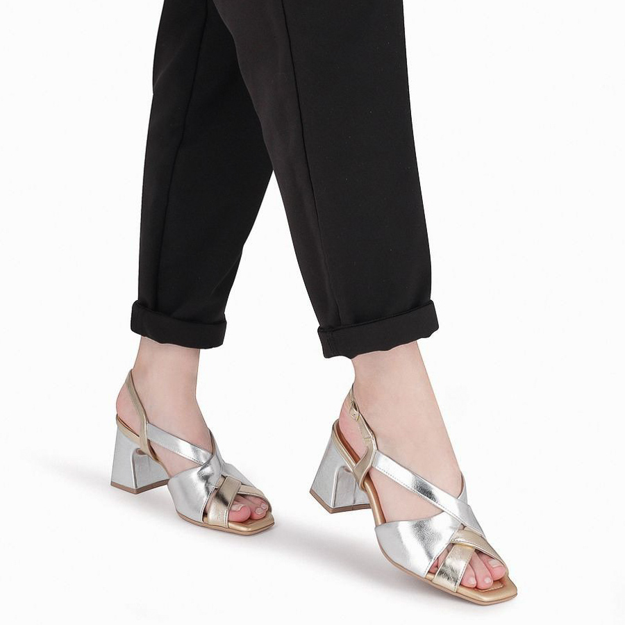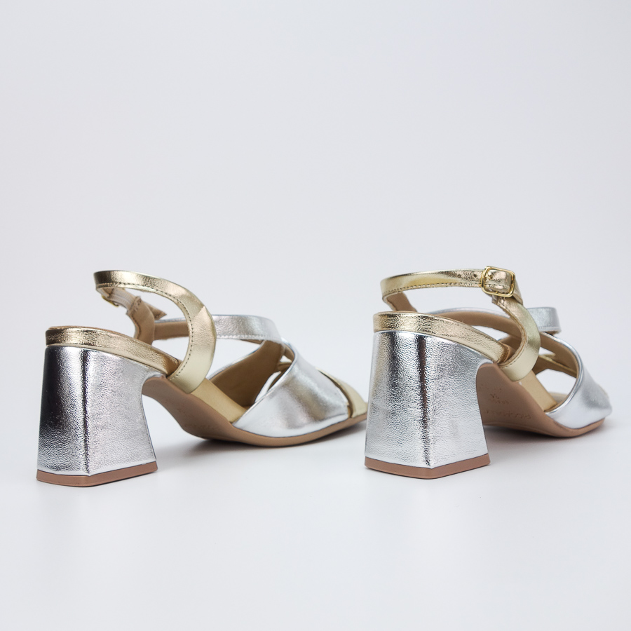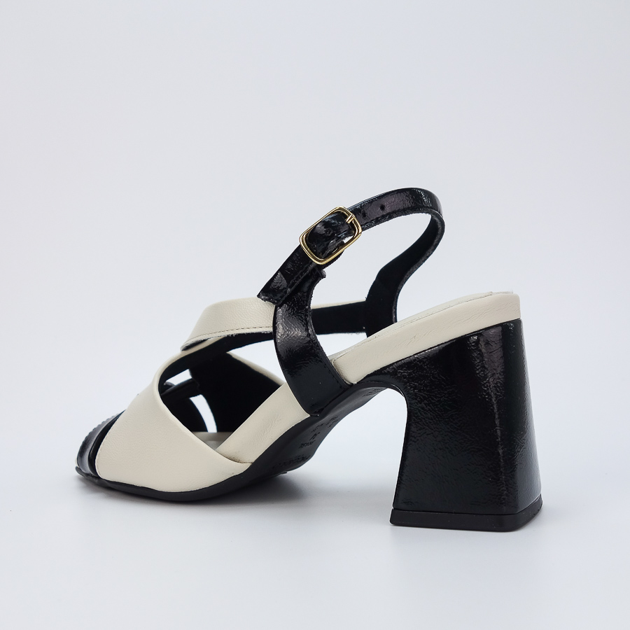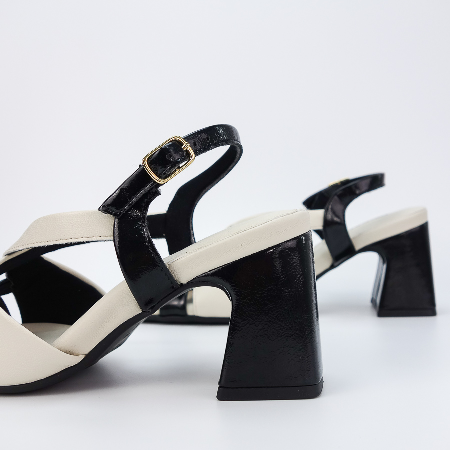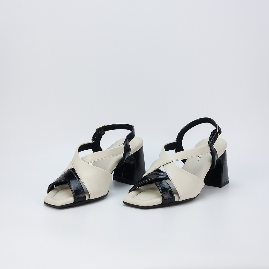 SANDÁLIA PICCADILLY BICOLOR COM TIRAS CRUZADAS E SALTO MÉDIO