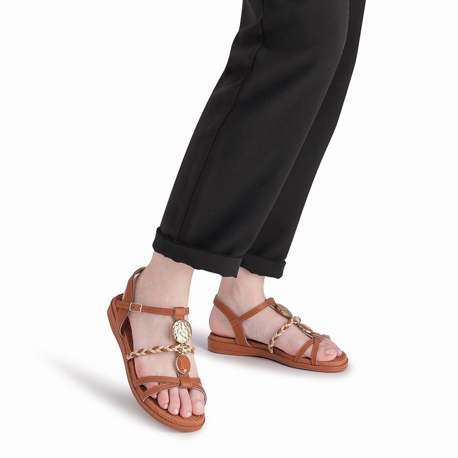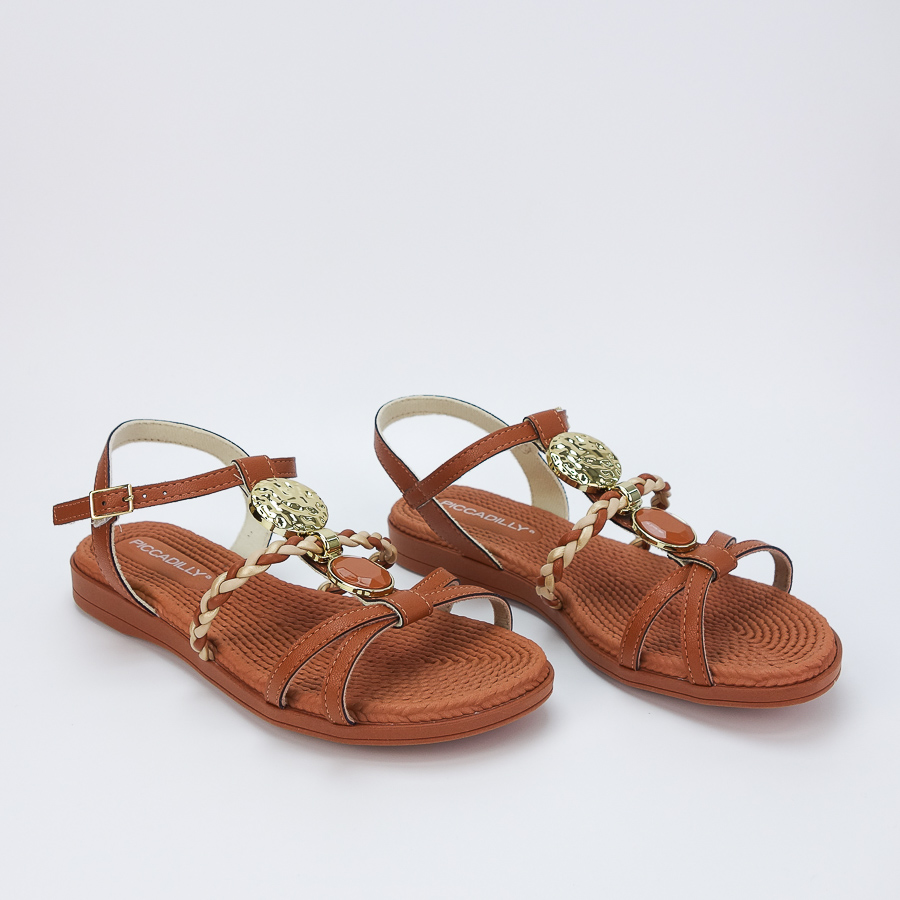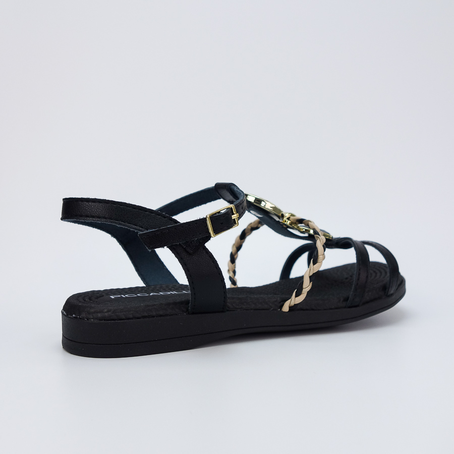 SANDÁLIA PICCADILLY DE TIRAS COM TRANÇA E APLICAÇÃO DOURADA