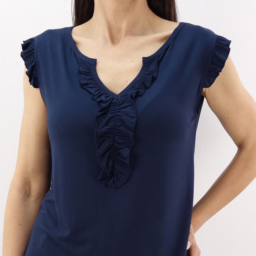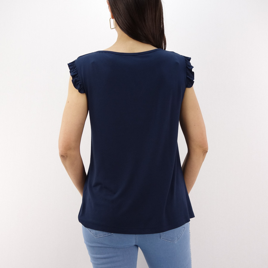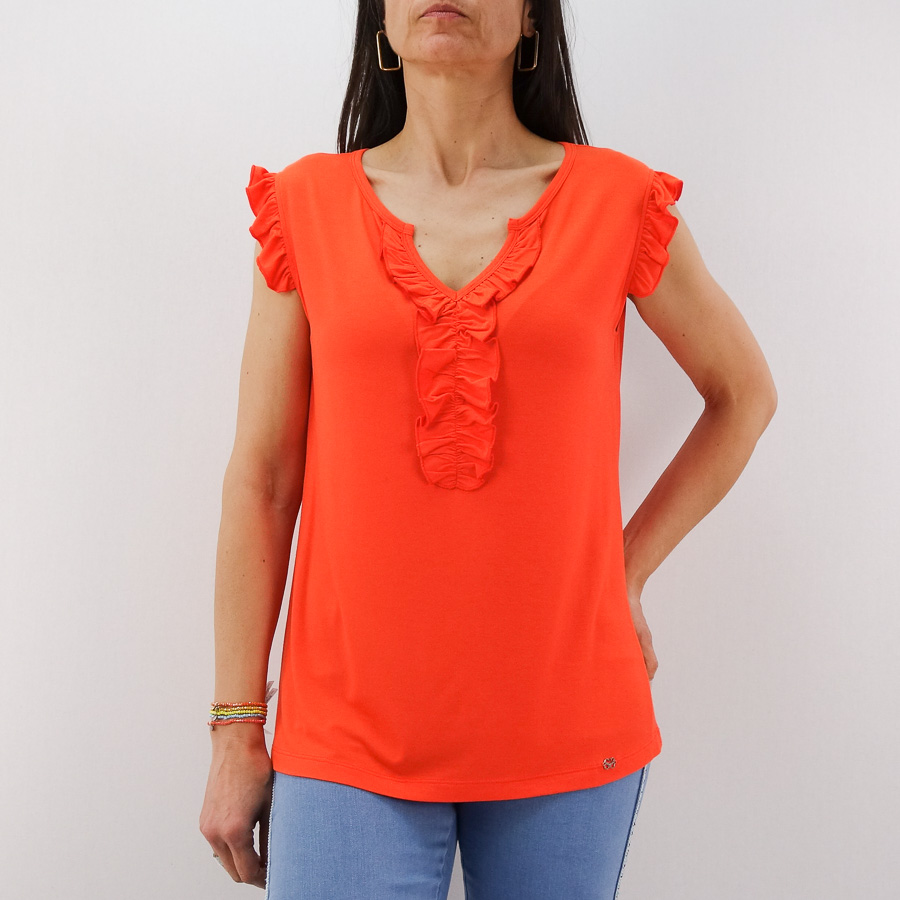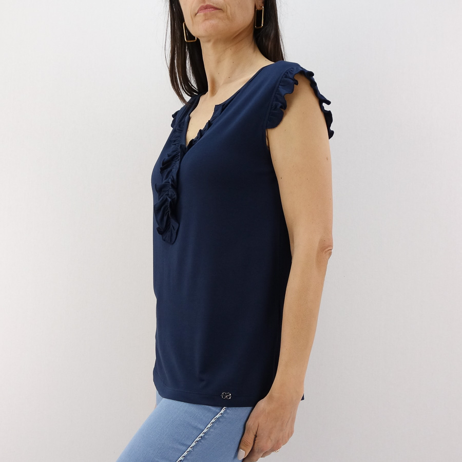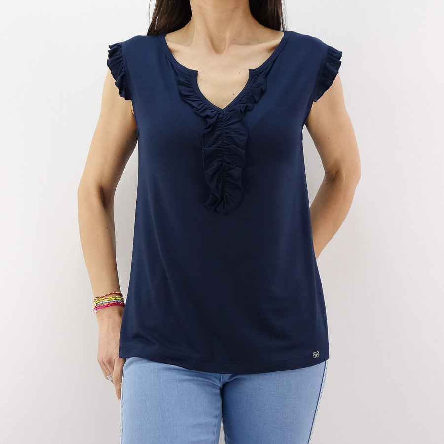 TOP SCUSI DECOTE EM BICO COM FOLHO
