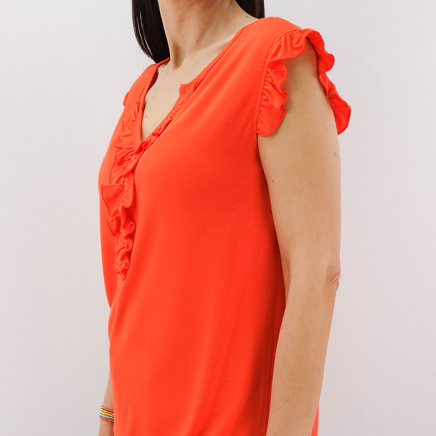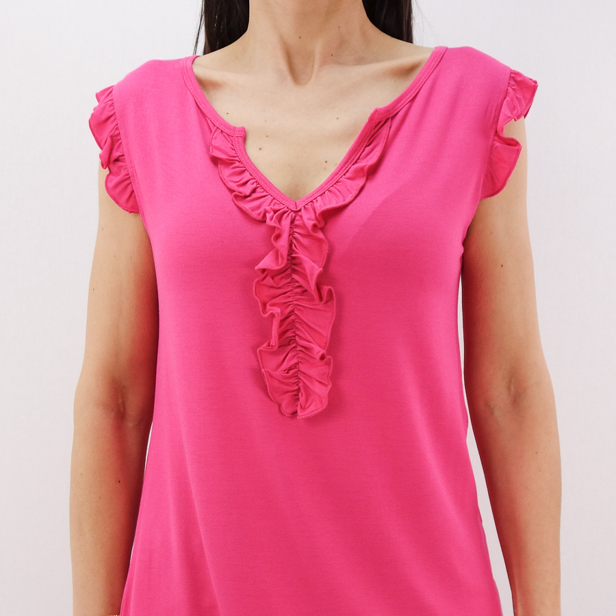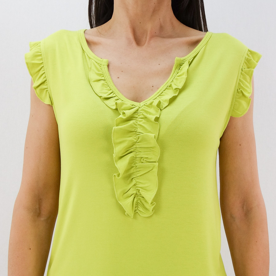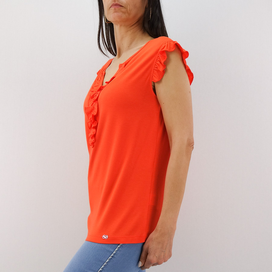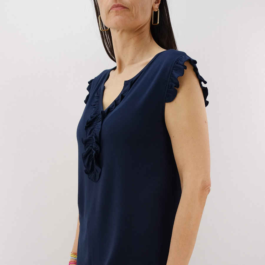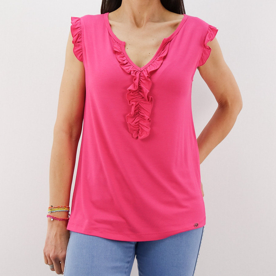 TOP SCUSI DECOTE EM BICO COM FOLHO