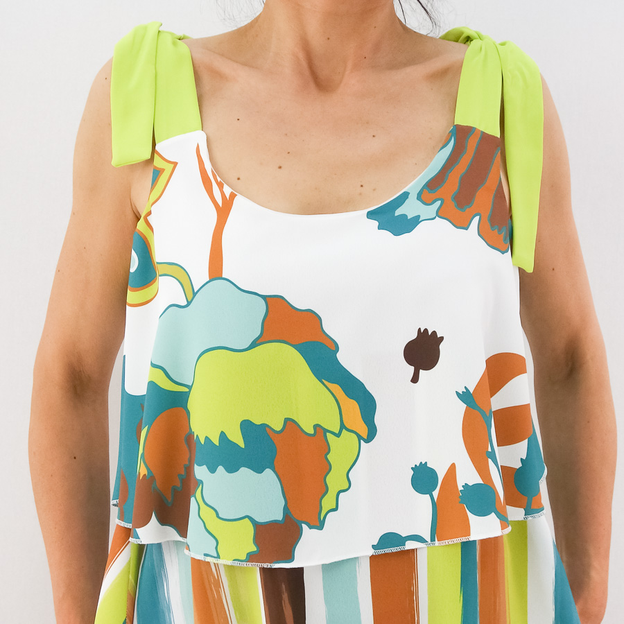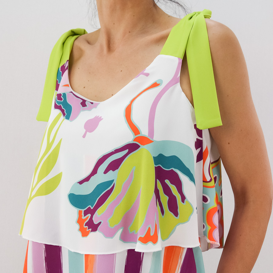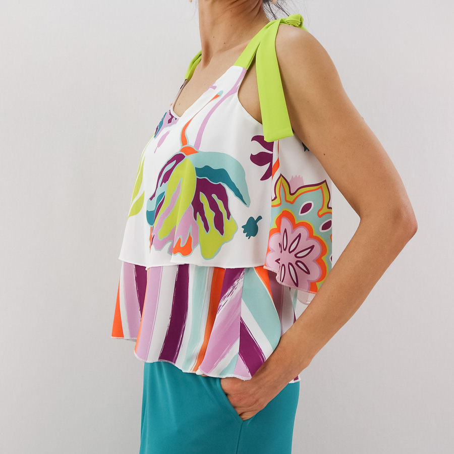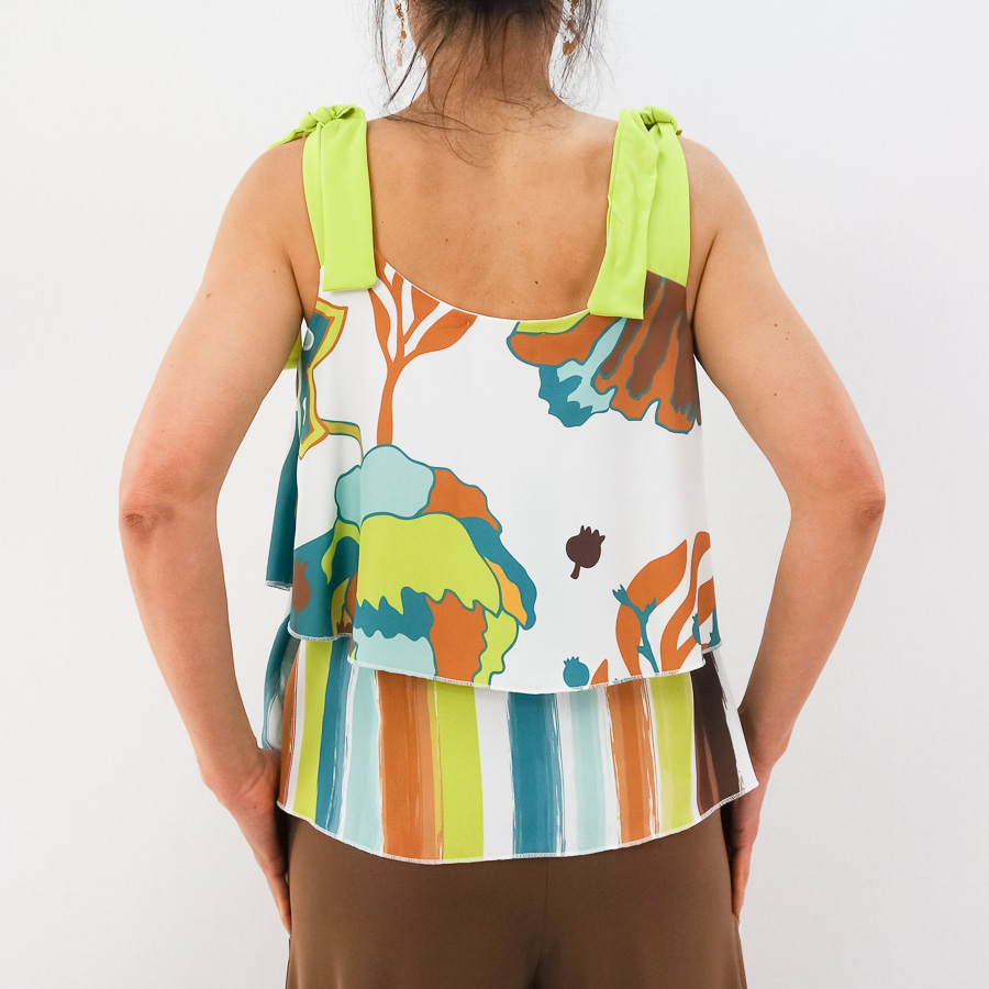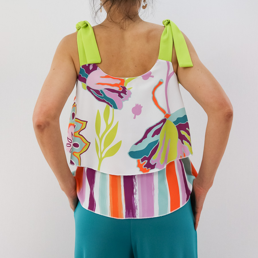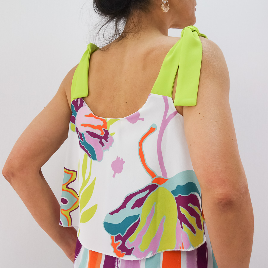 TOP SCUSI ESTAMPADO COM LAÇADA NAS ALÇAS