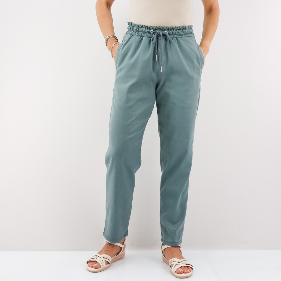 CALÇA LJ COM CORDÃO E ELÁSTICO NA CINTURA