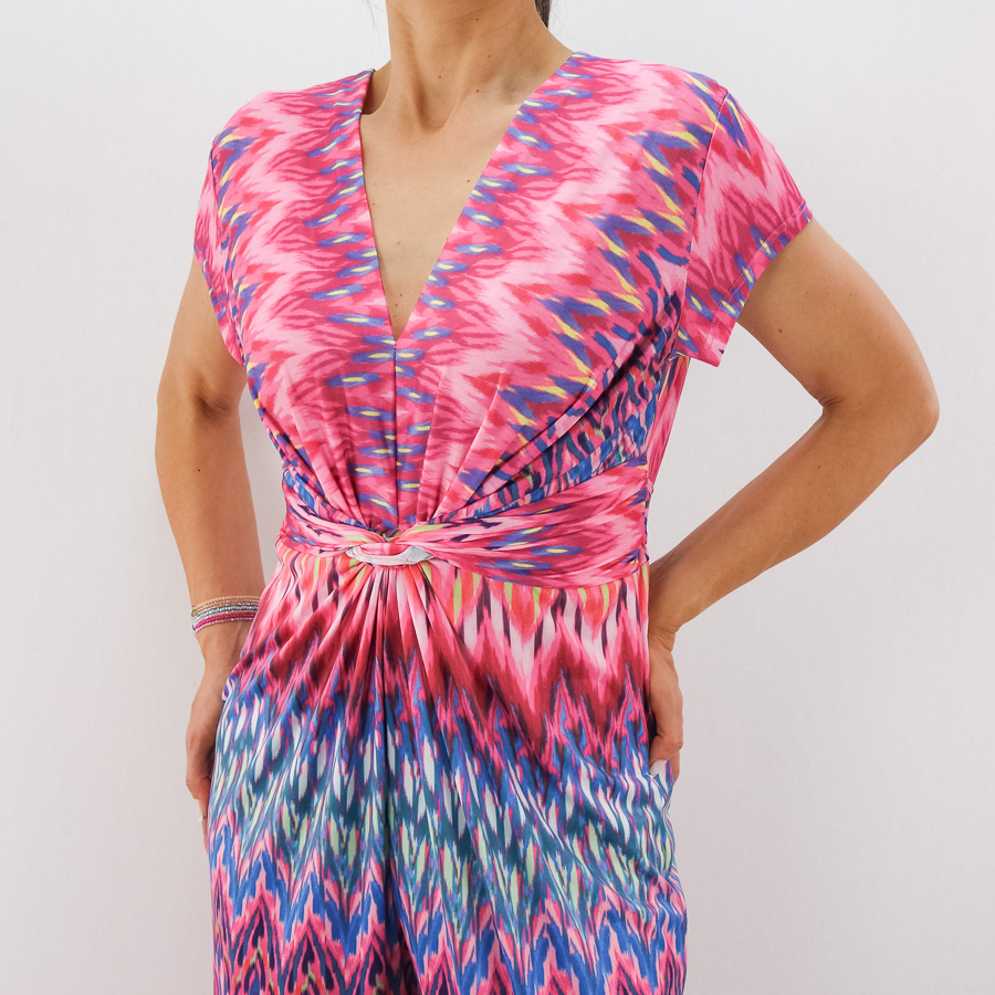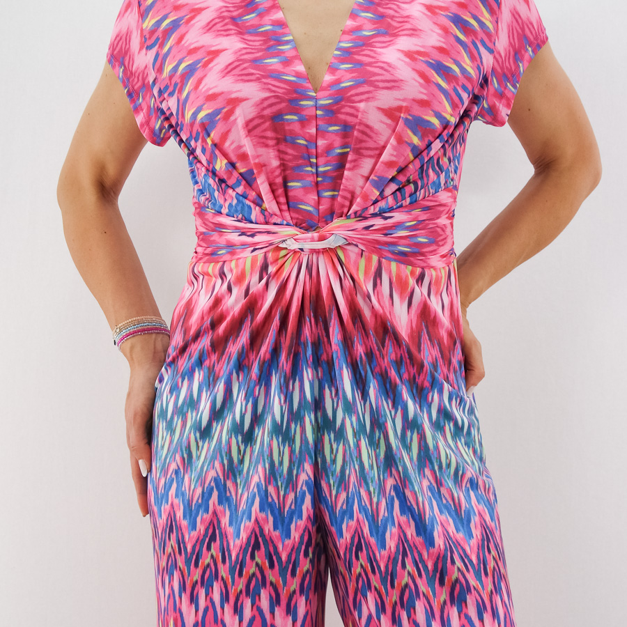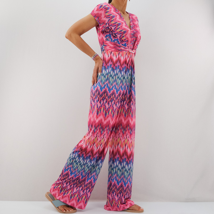 JUMPSUIT SILENNE DECOTE EM BICO ESTAMPADO COM NÓ